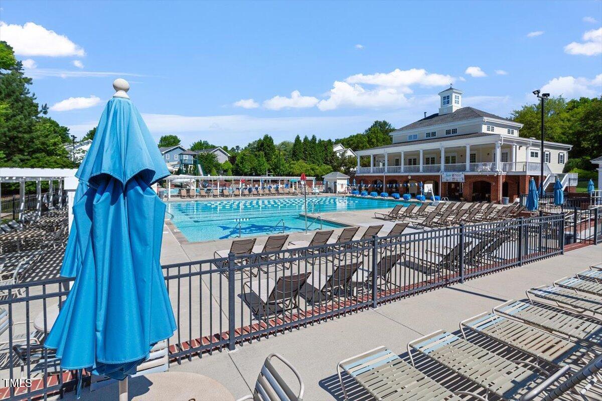 Community Amenities: Bedford at Falls River provides an active, welcoming lifestyle across 600 acres with 20+ miles of sidewalks, greenway access including the 27.5-mile Neuse River Trail, multiple pocket parks, lap pool with swim team, family activity pool, clubhouse, tennis courts, and pet stations throughout.
