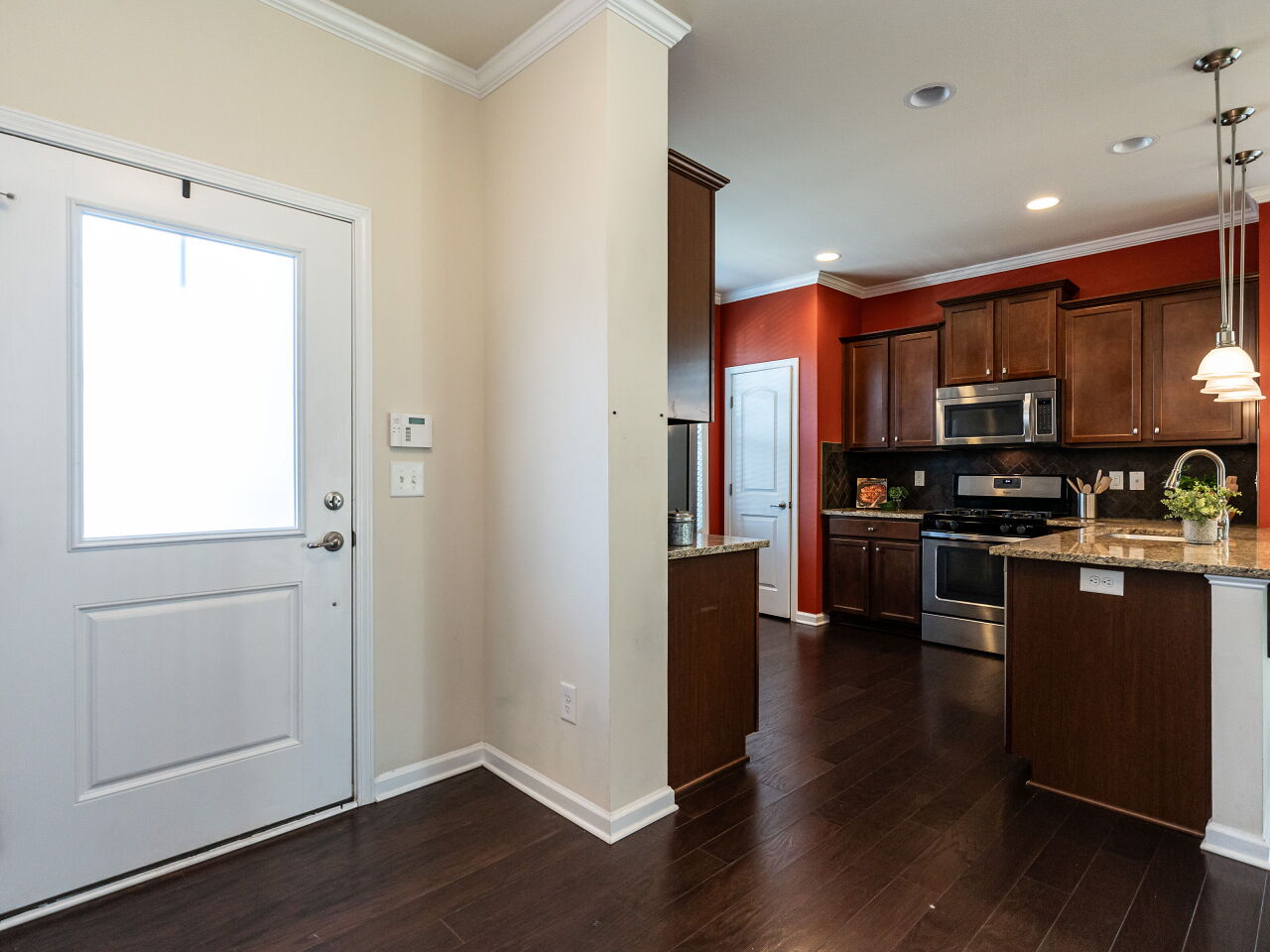 Incredible Thompson Ridge end unit townhome with a premium corner lot. This floor plan offers additional windows providing an abundance of natural light and a 1st floor primary bedroom. Convenient to your Duke favorites…trails at Duke Forest, Duke Hospital, and Duke University.