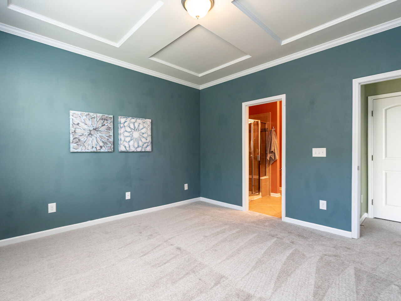 Covered patio with closet for additional storage. Primary bedroom with trim detail in the ceiling, a large WIC, and dual vanity. Open staircase to loft/landing which could serve as an office, with two additional bedrooms. New carpet and pad are ready for the next owner!
