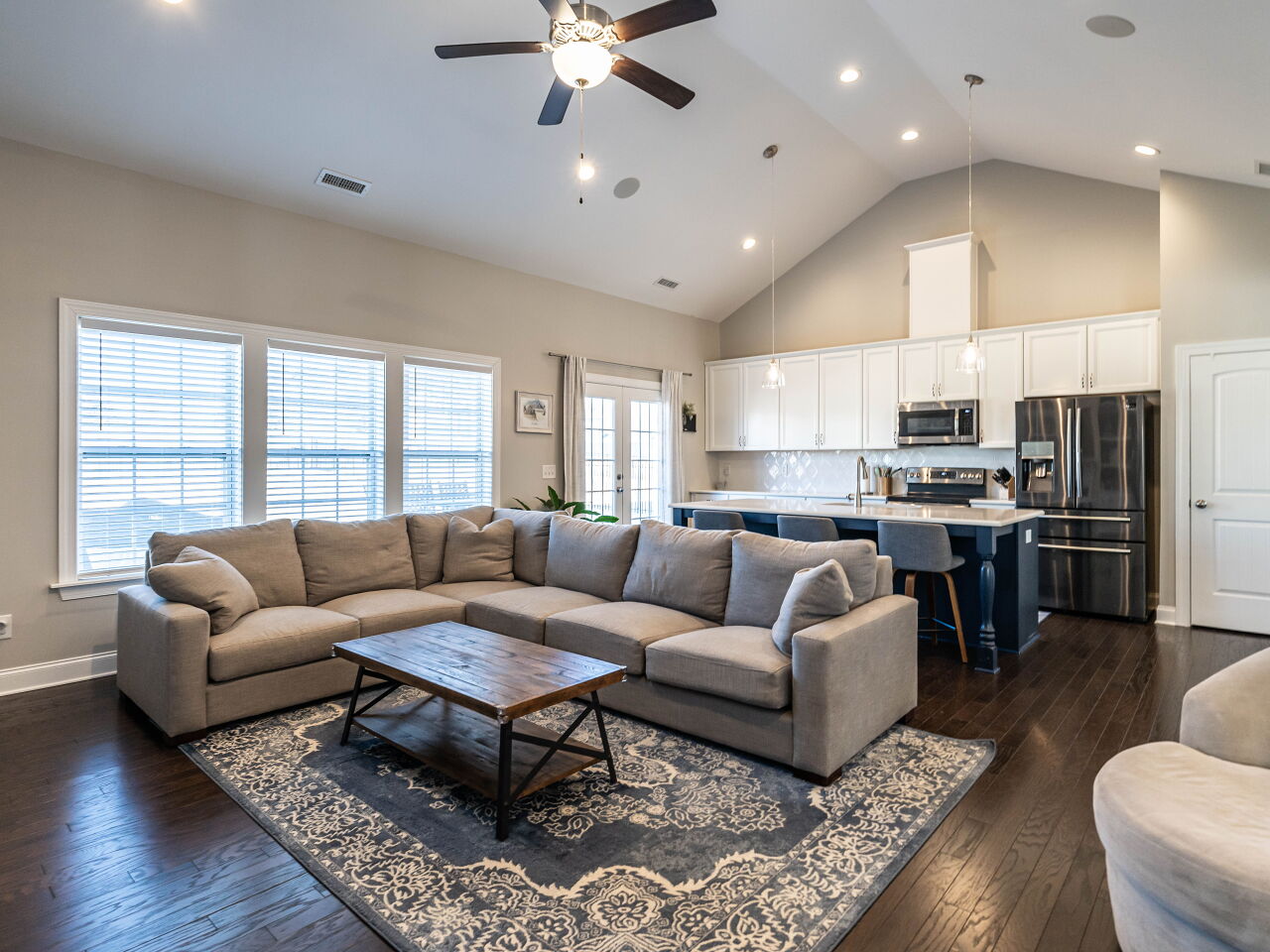 Exceptional floor plan where comfort and functionality meet in perfect unison. Upon entering, you’re welcomed into a spacious foyer opening to a family room with vaulted ceiling.