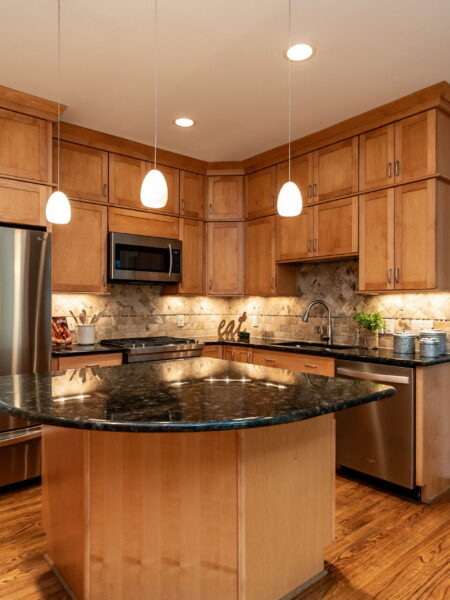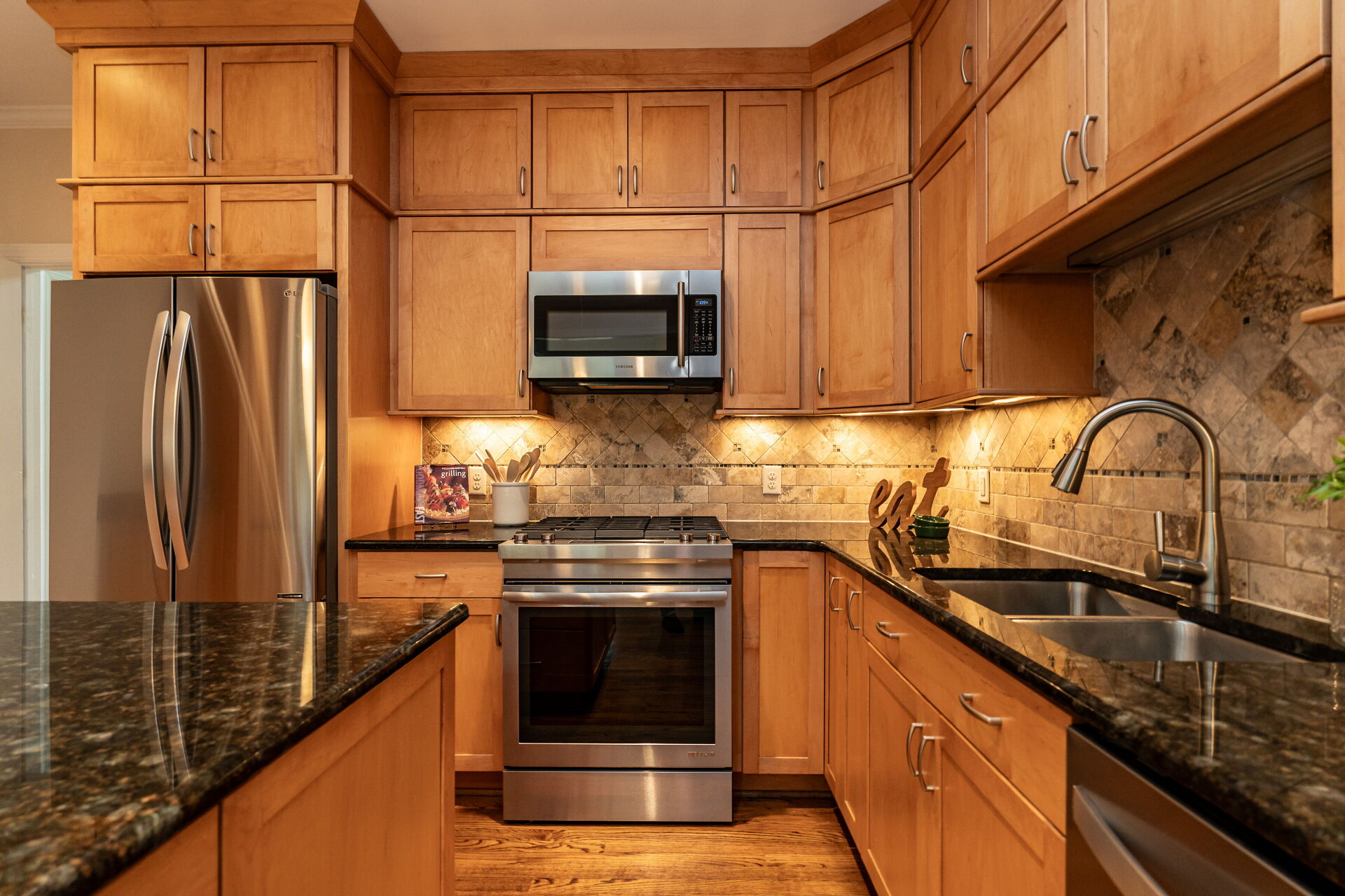 - Remodeled Designer Kitchen With SS Appliances, Custom Cabinets, and Granite Countertops.