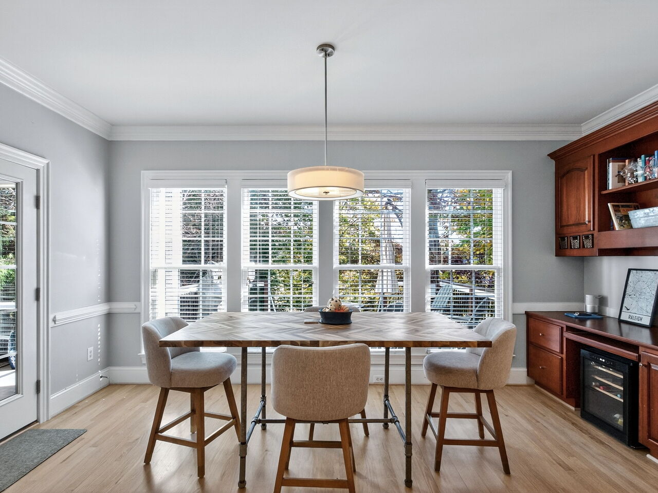 The home’s location provides easy access to Umstead State Park, Research Triangle Park, and RDU International Airport, combining convenience with a peaceful residential setting.