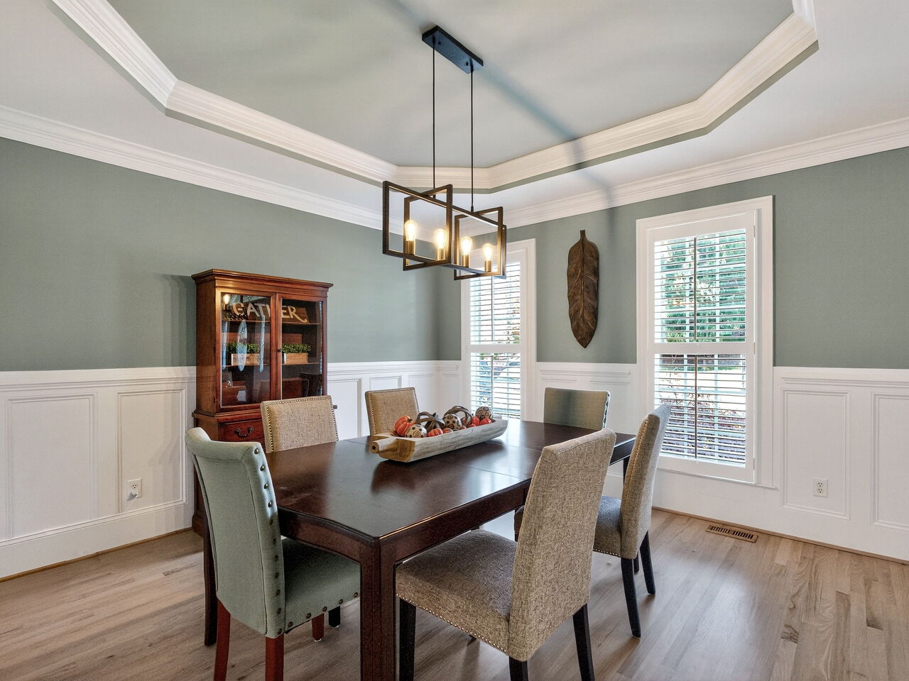 The home has been comprehensively updated with refinished hardwood floors, a third-floor addition with dormer, and modernized mechanical systems. Quality finishes throughout include wainscoting, plantation shutters, coffered ceilings, and tray ceilings.
